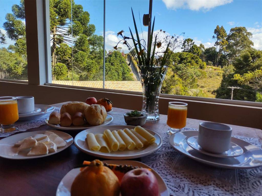 Todas as manhãs, nossos hóspedes são recebidos com um delicioso e variado café da manhã, preparado com ingredientes frescos e regionais. Pães, bolos, frutas, sucos e outras delícias servidos em um ambiente acolhedor, com o cheirinho da serra no ar.